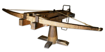 The Projector Station is very similar to its distant cousin, the hand held Projector. They both fire bolts, just of radically different sizes. The amount of pressure is adjustable up to but not to exceed, the tinsel strength of the tangs and the bow ropes. The bolt travel is close to the speed of a bullet and the barbed point of the bolt makes it difficult to remove.